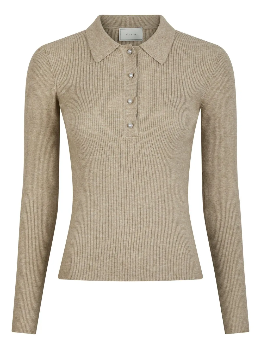 Flot enkel tætsiddende strik med lange ærmer fra Neo Noir. Med klassisk krave og fine knapper ved udskæringen.
