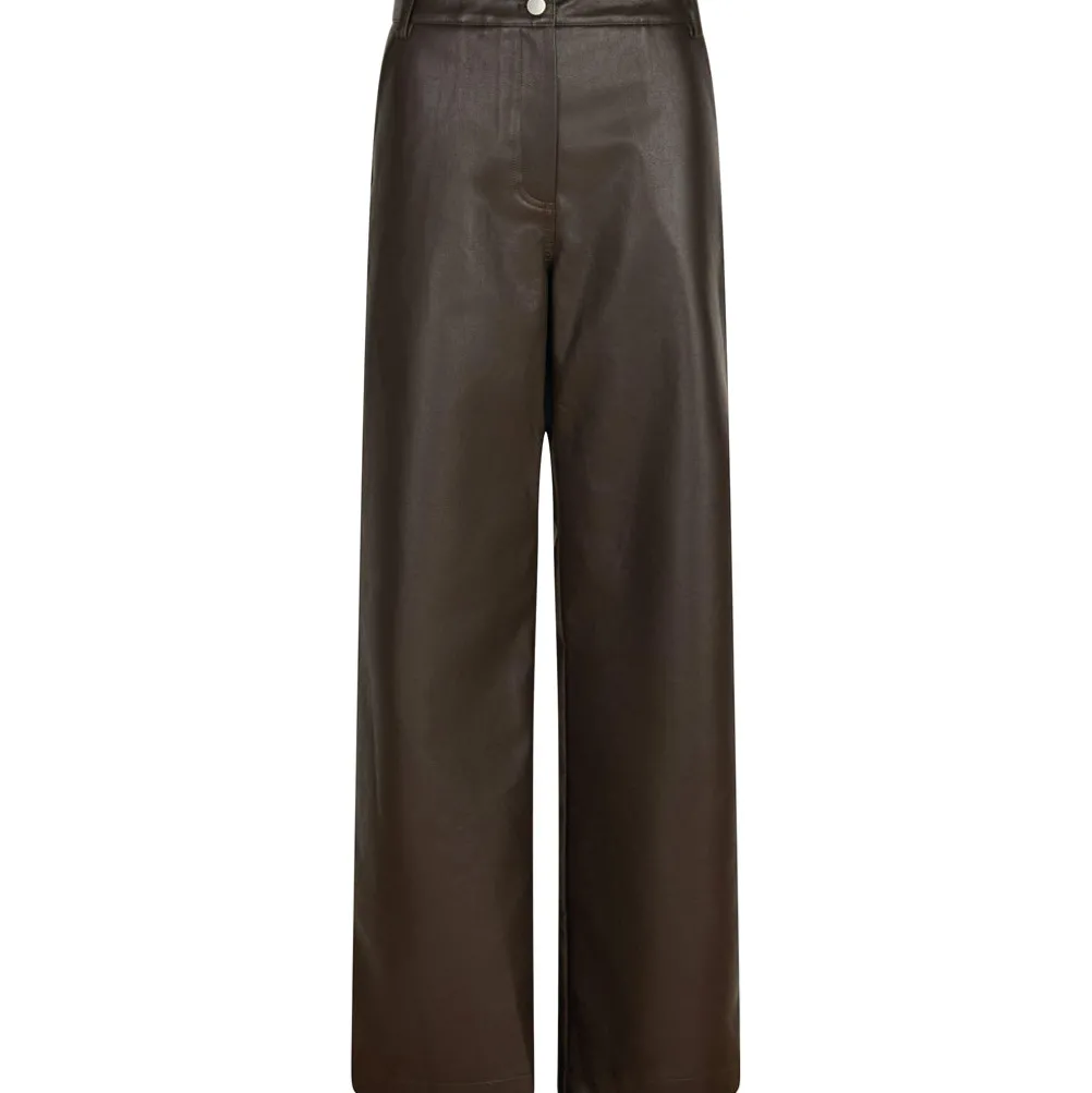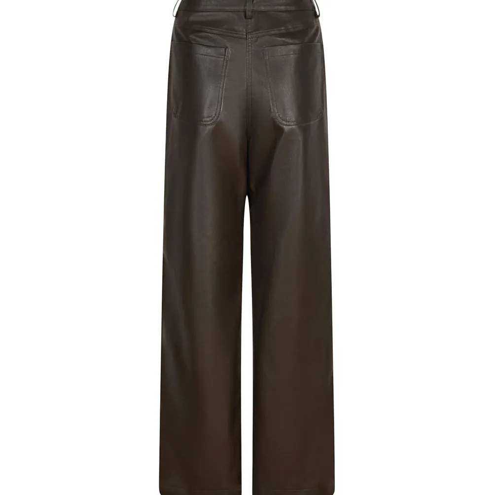 Super cool faux læderbukser fra Neo Noir med brede lige ben og høj talje. Lavet i en flot mørkebrun farve.