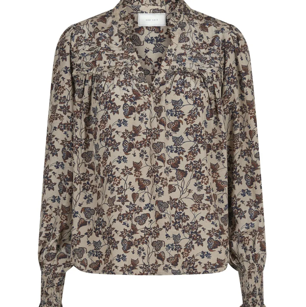 Smuk bluse med blomstermønster fra Neo Noir med lange løse ærmer med manchetter og v-udskæring. Perfekt til både hverdag og fest.