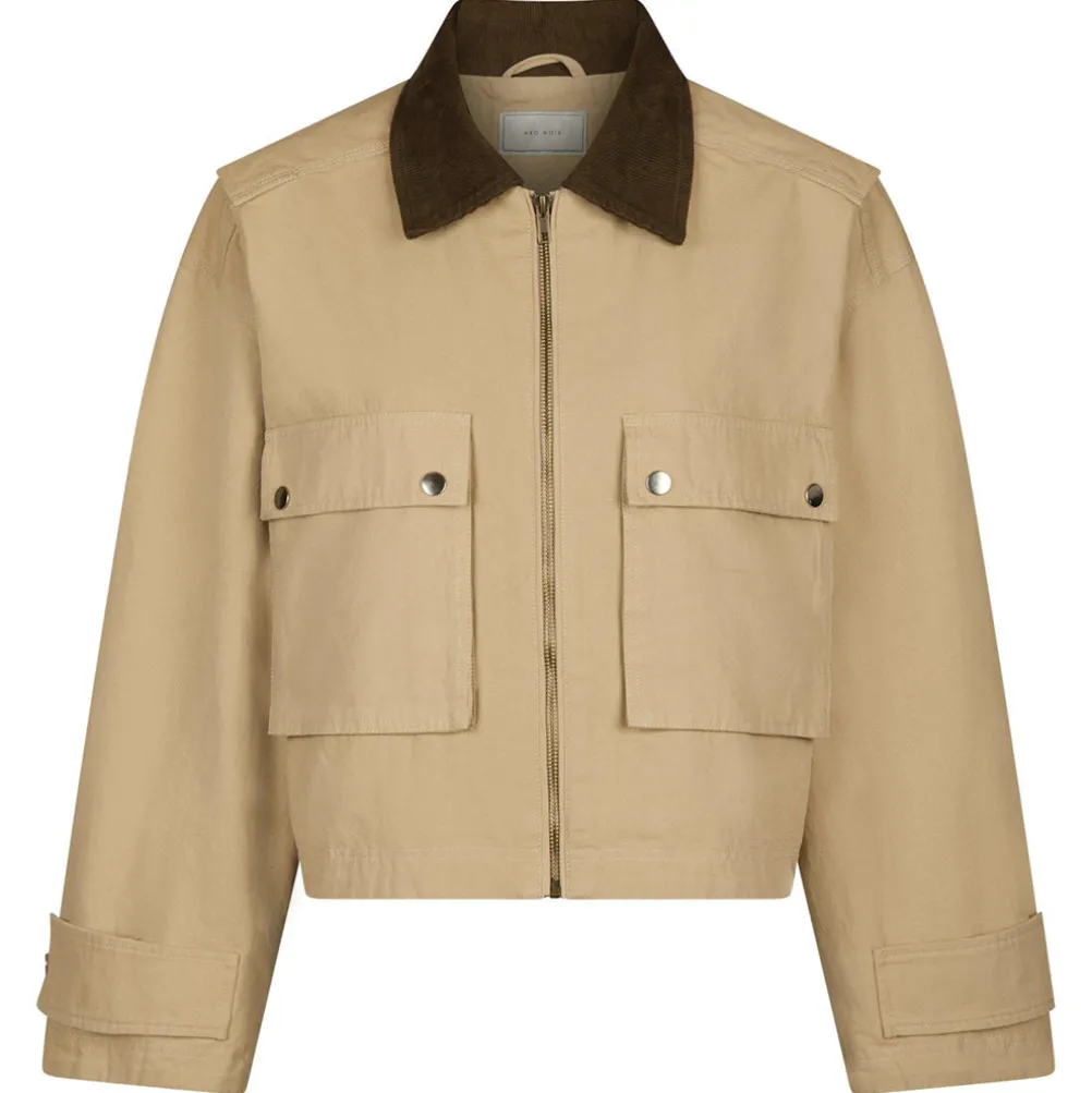 Flot boxy canvasjakke fra Neo Noir med brun fløjlskrave, store lommer og lynlåslukning. Med brede ærmer.