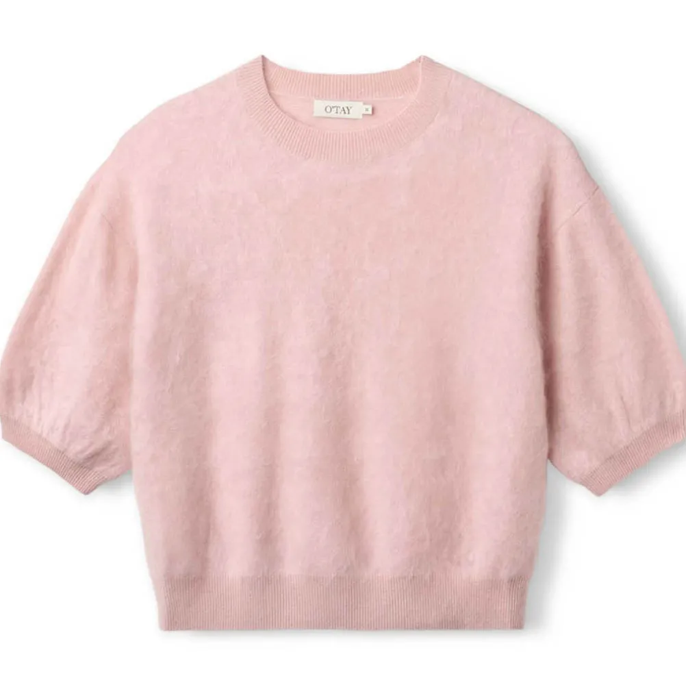 Smuk fluffy strik fra O’tay i fin lyserød farve. Med rund hals, korte ærmer og små ribkanter. Lavet i 100 % børstet cashmere.
