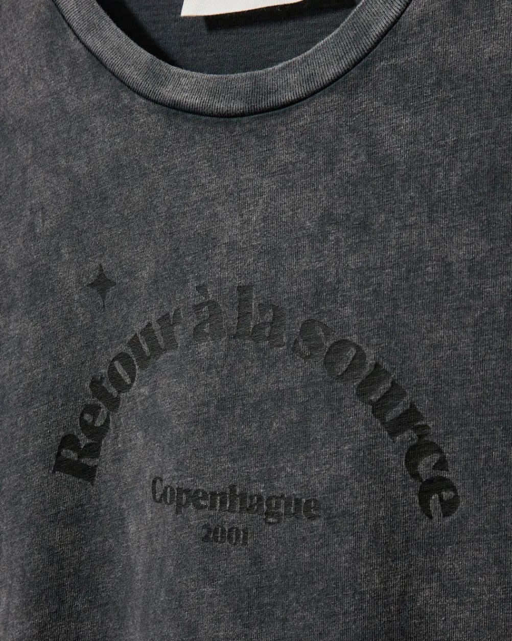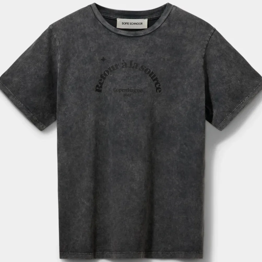 Cool vasket sort t-shirt fra Sofie Schnoor med tekst på fronten. Med rund hals og korte ærmer.