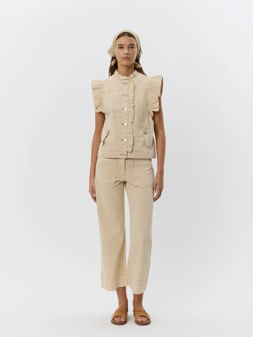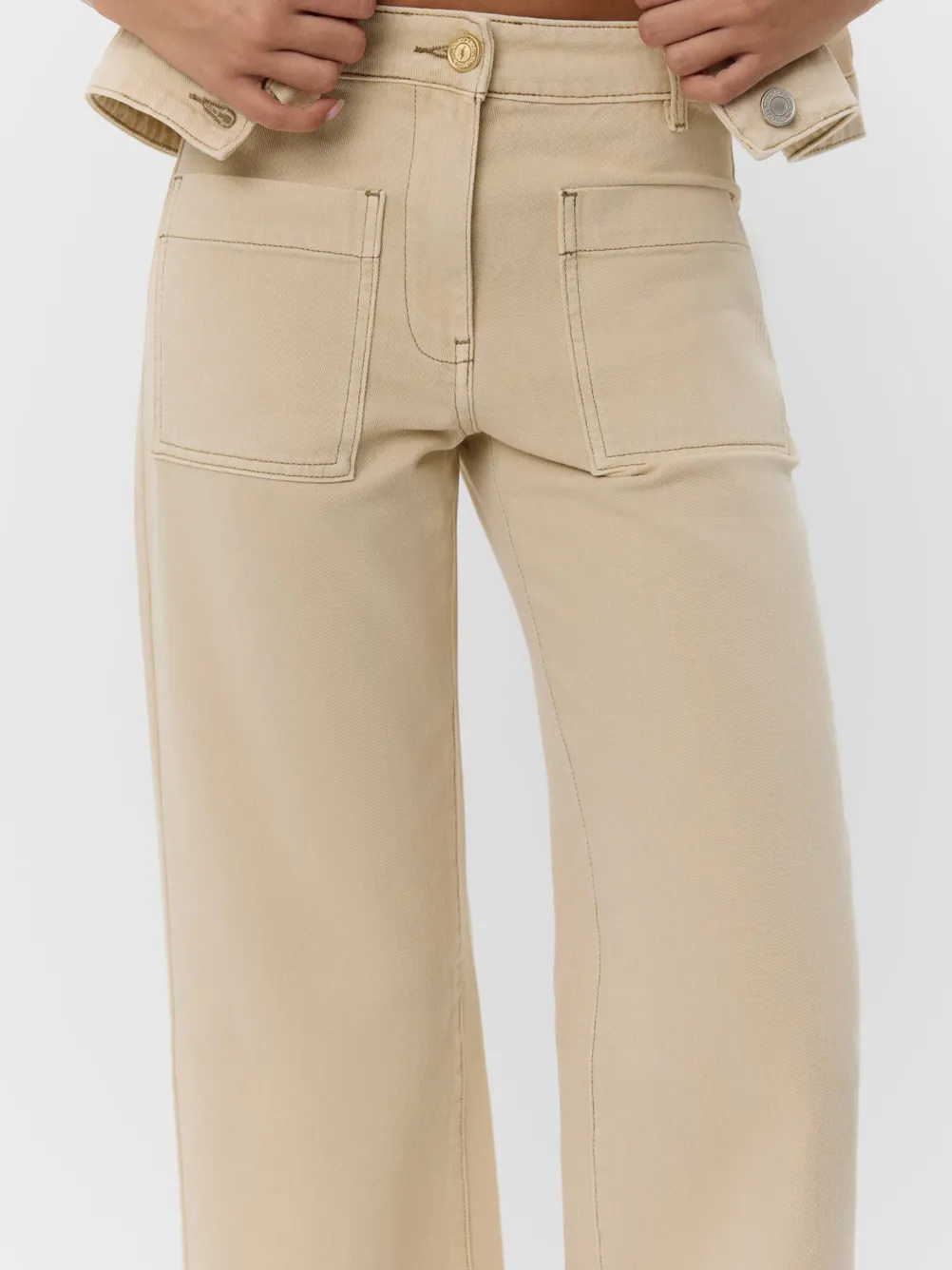 Flotte sandfarvede bukser fra Sofie Schnoor med mellemhøj talje og afslappet pasform. Med stretch, som sikrer en kom komfort.