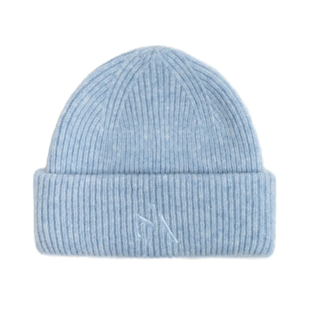Skøn blå strikket hue fra Sui Ava. Huen er i ribstrik hvilket gør den er nem at udvide og passer til de flestes huer derfor kommer huen også kun som one-size.