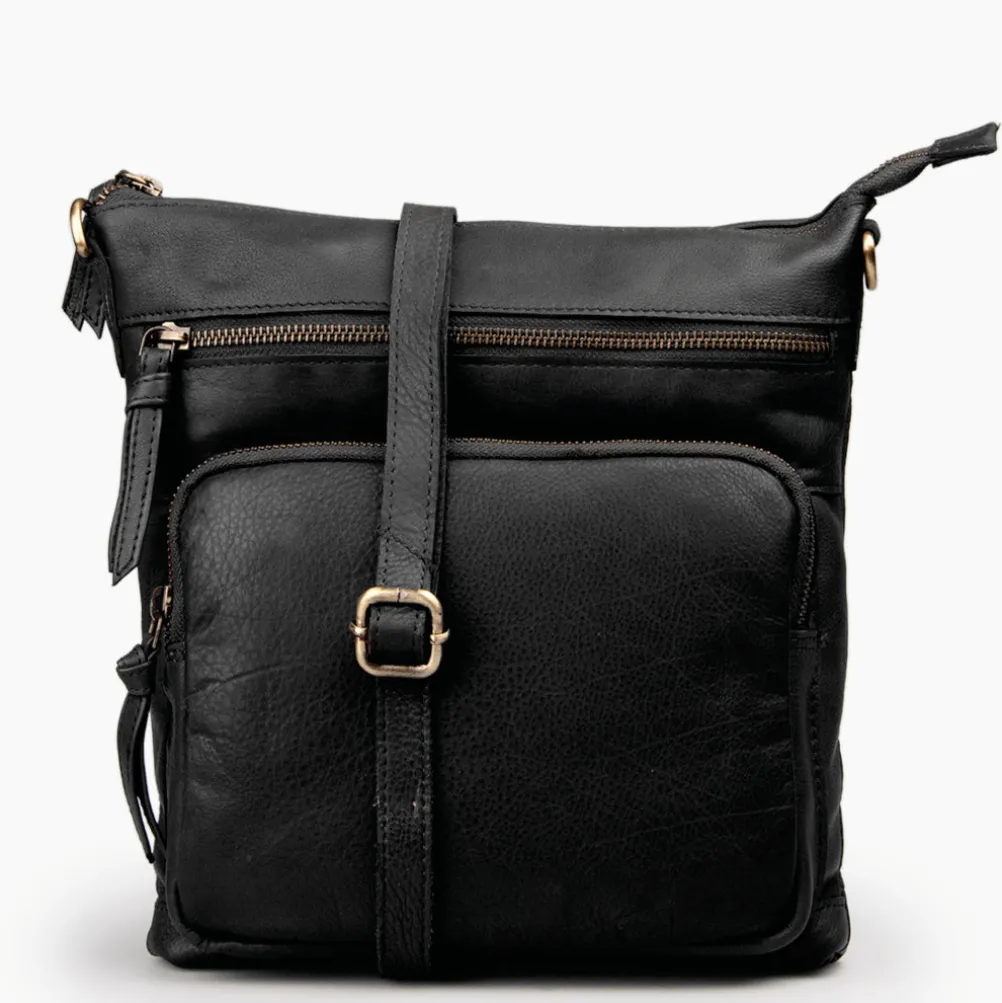Lækker skuldertaske i læder fra Treats. Med to frontlommer med YKK lynlås og en indvendig lomme med YKK lynlås.