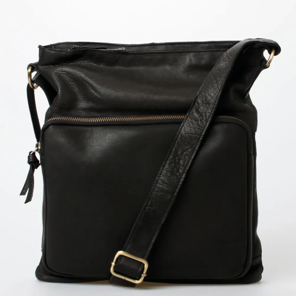 Lækker skuldertaske i læder fra Treats. Med en frontlomme med YKK lynlås, en indvendig lomme med YKK lynlås og tre indvendige lommer til kort.